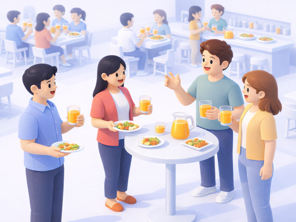 ゲームのあとは懇親会を行い、軽食を囲みながら交流を深めています。